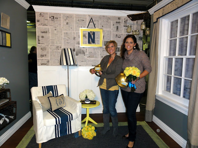 Ignore the fact that we sort of look plastic (tv make up is simultaneously pretty and wierd, isn’t it?) and that we look extremely sleep-deprived, and take a look at the gold hard hats and yellow roses we were awarded for our hard work.