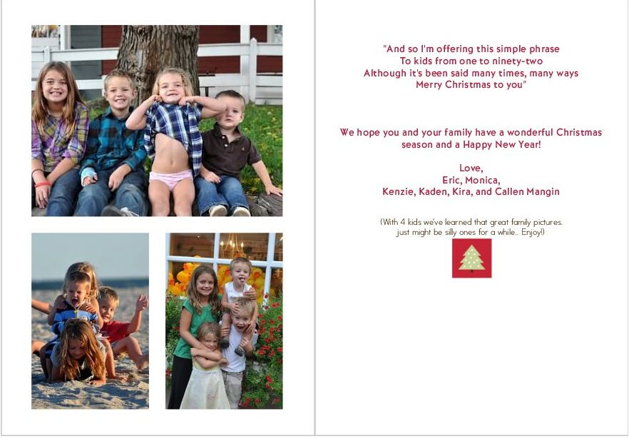 My family struggled with pictures for YEARS… one Christmas, this was the inside of our Xmas card…  Keepin’ it Real People!