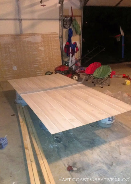 We shot nails into the ends of the planks, just as you would with real wood to give it an authentic look.