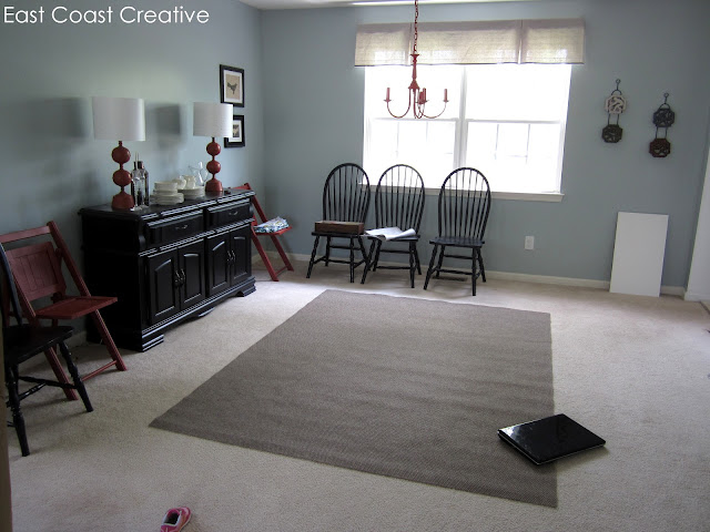 Then, I got tired of everything the way it was and removed the hutch from over the buffet, decided to refinish the table, and move everything around in the Spring: