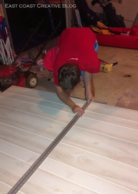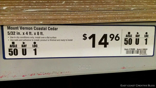 We only needed 4 sheets to cover the wall, so this was going to be the most cost effective way to plank the wall. I snapped pics of the paneling and the price, so that I could go home and make sure the colors would work in the room, and that I was getting the best price on the paneling. Plus, I knew my hubs could use the extra guidance so that when he went back with the truck to pick it up, he could have all the info he needed right on his phone.