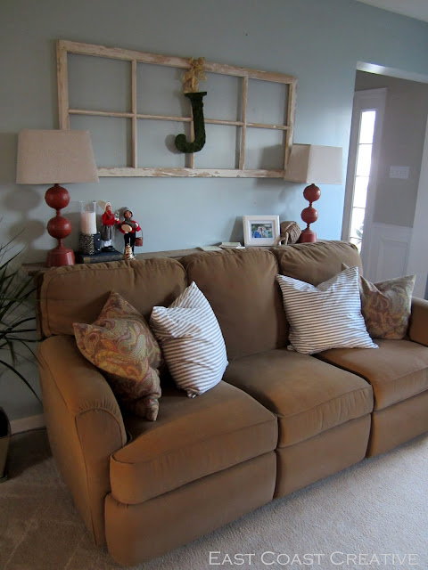 I love the Pottery Barn stockings that were a gift to us from my mom, and think they look great against the stenciled fireplace.