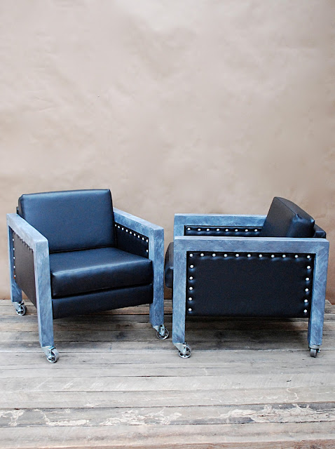 Often the “dreaming up” of a new project can be done in my sleep, literally.  But execution can feel like a trip to the dentist, one in which I go in for a routine cleaning and find I need a double root canal.  The trick to any DIY project is COMMITMENT. Commit to your goal and don’t let up no matter how many coats of paint are applied in vain.  These previously drab, brown, faux-leather club chairs were purchased on sale for $12 each at a local thrift shop.