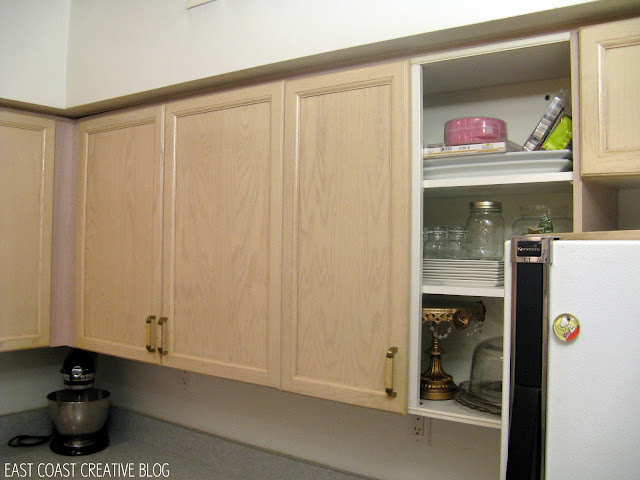Wow! Your cabinets looks so fresh in white! Great job. I have a dumb question- did you also paint the inside of your cabinets, or did you leave it in the pickled wood finish? I clearly have never painted cabinets. : )