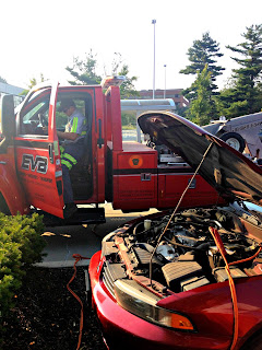 Are you kidding me? The one time I agreed to take the beater. Ugh. We called a tow service and had the car jumped within 30 mins. Okay, not too bad, we still have tons of time before the concert started at 7:30pm.